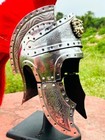 Helmet Medieval Roman Fighter Metal Armor With Red Head Piece Vintage Decor