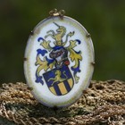 Vintage Heraldic Coat Of Arms Necklace Large Porcelain Family Crest Pendant 23"
