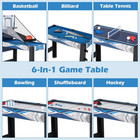6-in-1 Multi Game Table, Combo Game Table W/basketball, Billiards, Ping Pong, Ho