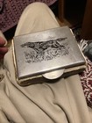 Cigarette Table Box Signed Silver Stag Horn Rare And Useful On Desk