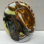 Vintage Porcelain Horse Horses Gold Tone Cabochon Brooch Pin
