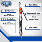 Poly Rope Hoist Pulley Block, 4000 Lb 2 Ton 65 Feet Of 3/8 “, 7:1 Lifting Power