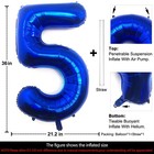 Large Foil Number 5 Balloons, 101cm Light Navy Blue 5 Helium Balloon With Metall
