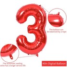 40 Inch Red Large Numbers Balloons 0-9, Number 3 Digital 3 Heliumfoil Mylar B...