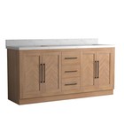 72" Light Wood Double Bathroom Vanity Cabinet W Marble Countertop & Square Sinks