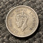 1943 British India Quarter Rupee Silver Coin, King George Vi