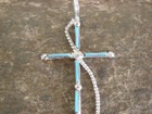 Native American Zuni Indian Sterling Silver Turquoise Cross Pendant By Vacit