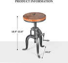 Rustic Industrial Crank Stool - Cast Iron Bar Chair With Wooden Seat