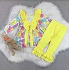 New Boutique Easter Bunny Rabbit Peeps Tunic Ruffle Leggings Girls Outfit Set