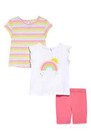 3 Piece Baby Girl's Size 12m Rainbow T-shirts & Shorts Set - New