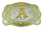 Initial " A " Rodeo Cowboy Letter Shine Gold Silver Western Belt Buckle