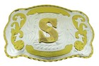 Initial " S " Rodeo Cowboy Letter Shine Gold Silver Western Belt Buckle