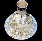 Wine Fountain Kiddush Cup+8 Goblets Silver Plate Judaica Israel Shabbat Jewish