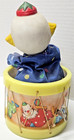 Vintage Wind Up Jack In The Box Clown Toy Plastic Drum Fabric Body Works