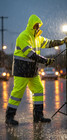 Yellow Safety Rain-suit, Rain Jacket With Hoodie And Rain Pants