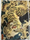 Kuniteru Japanese Woodblock Print Ukiyo-e Edo Triptych Samurai Tiger Battle
