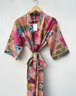 Upcycle Silk Kantha Patchwork Kimono, Japanese Style Unisex Robe, Silk Dressing