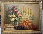 Vintage 1936 Carl Gb Knauff Sabbath Shabbat Jewish Table Still Life Oil Painting