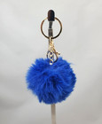 Royal Blue Purse Charm Keychain Key Fob Fluffy Plush Ball Key Ring Pom-pom