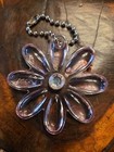 Coach ~ Keychain Ring Bag Phone Charm ~ Flowers W/ Crystal Centers - Euc!