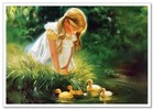 Lovely Children-flowers Of Life Pretty Girl Kids & Ducks Art New Modern Postcard