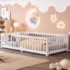 Twin Size Bed Floor Bed With Safety Guardrails And Door For Kids Boys Girls