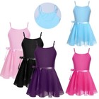 Kids Girls Gymnastic Skirted Leotard Spaghetti Straps Ballet Dance Dress Party