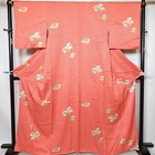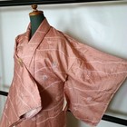 Elegant Japanese Shibori Kimono Robe Elegant Pinkish-orange Pure Silk 9917