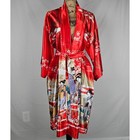 Vtg Gorgeous Juguemm Japanese Geisha Kimono Robe Red Satin Floral Women One Size