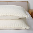 Waffle Pillow Shams Ivory King Set Of 2 Quilted Off White Cotton Cream Fringe...