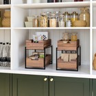 Acacia Wood 2-tier Sliding Kitchen Pantry Storage Organization Baskets