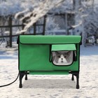 Heated Cat House Foldable Kitty Shelter With Heated Pad Green Large