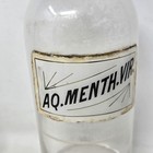 Antique Apothecary Glass Label Jar Pharmacy Medicine Bottle Aq. Menth. Vir. 10"