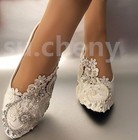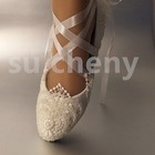 Su.cheny White Ivory Pearls Flowers Lace Ribbon Anklet Flat Wedding Bridal Shoes