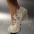 Su.cheny 3" 4 " Heel White Ivory Lace Pearls Wedding Shoes Pumps Bride Size 5-11