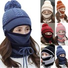 3 In 1 Women Beanie Cap Bobble Scarf Mask Set Knitted Winter Warm Snow Ski Cap