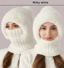 3in1 Winter Women Ladies Thick Knitted Pom Hat And Scarf, Mask Set Soft Warm Hat