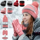 Women Beanie Knitted Hat Scarf Touch Screen Gloves Set Ski Skull Cap Warm Winter