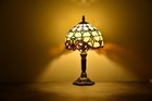 Tiffany Style Table Lamp Beige Baroque Stained Glass Antique Night Light H 14"
