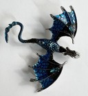 Silver Tone And Blue With Stones Flying Dragon Brooch Lapel Pin Pendant Mythical