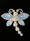 Vintage Silver Tone Blue Rhinestone Dragonfly Brooch Retro Lapel Pin Signed “np”