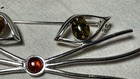 Large Vintage Handmade Cat Sterling Silver Natural Baltic Amber Brooch Lapel Pin