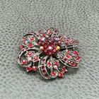 Brooch Red Rhinestone Crystal Flower Silver Tone Statement Lapel Sweater Pin 2"