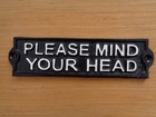 Antique Style Rectangular Please Mind Your Head Cast Iron Metal Sign 8" X 2"