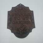 Garden Welcome Sign Cast Iron Vintage Rustic Hummingbird Gate Fence Plaque