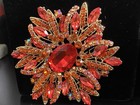 Vintage Large Citrine Marquis Rhinestones Sun Flower Brooch Pin Sunflower Metal