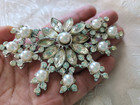 Vintage Huge Large Beautiful Rhinestones 4" Inch Flower Faux Pearl Brooch - Pin