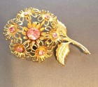 Vintage Flower Brooch Pin Gold Tone Large Pink Crystal Ab Rhinestones. #798
