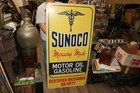 Large Vtg Sunoco Motor Oil Gasoline Gas Station Mechanic On Duty 48" Metal Sign