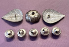 Unique Vintage Silver Metal Buttons - Large Flower, 2 Large Leaves & 5 Rose Buds